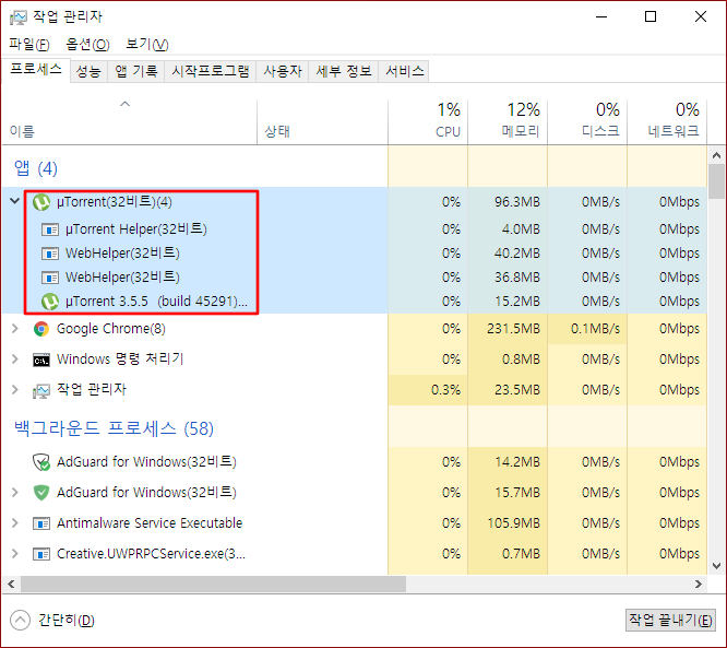 제 경우에는 torrent 가 자꾸 윈도우와 같이 실행이 되서 짜증나서 강종 시키고 윈도우를 종료하고 있습니다.