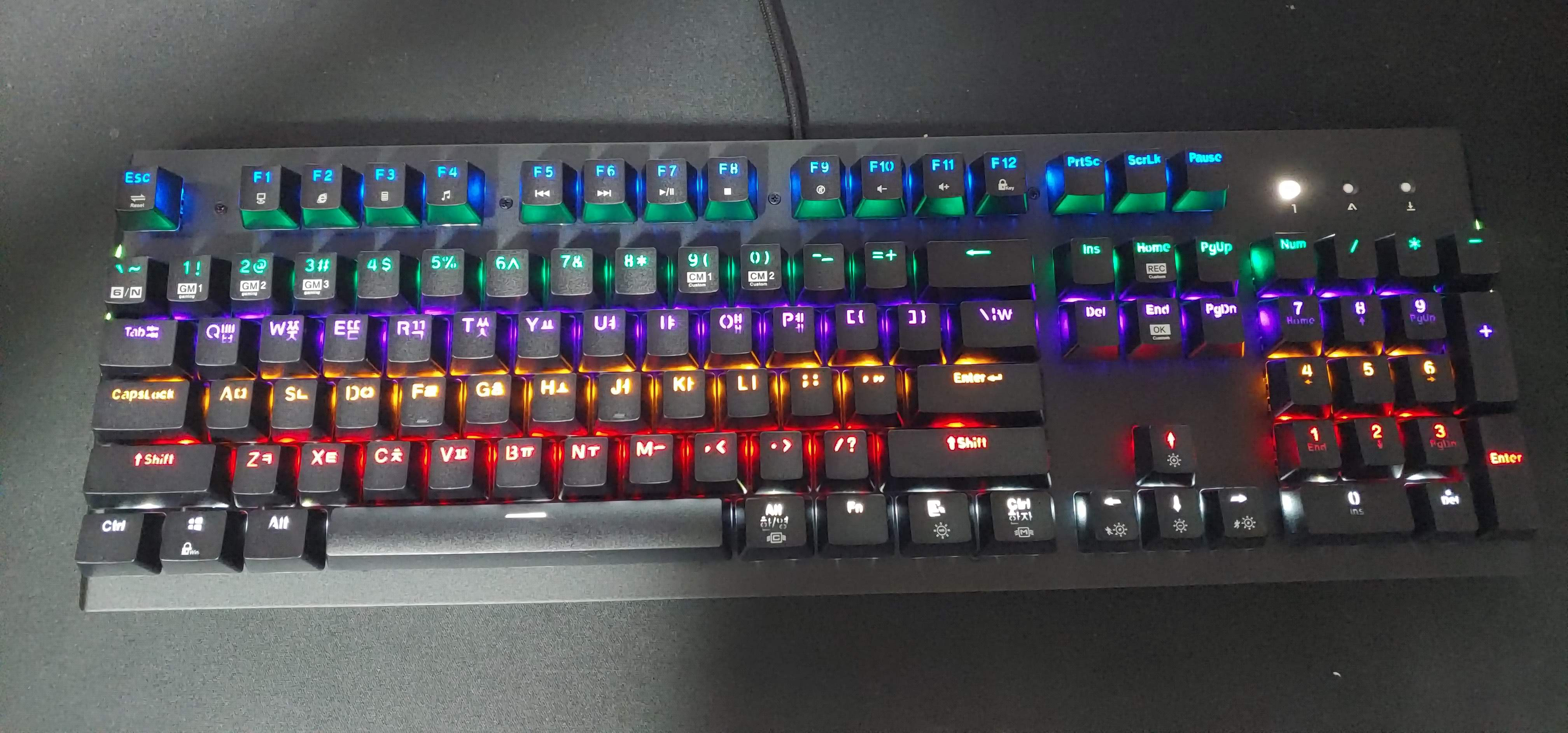 우선 게이밍 키보드(라고는 하지만 그냥 화려한 종류)에 속하는 거 같긴 한데 게임은 요즘 거의 못하고 있어서 게임에 맞는지를 확인하고 산 건 아닙니다.