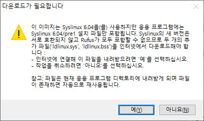 이건 USB 설치를 위해 필요한 파일이 있다는 거니까 예(Y)를 눌러서 진행을 해 주시고요