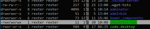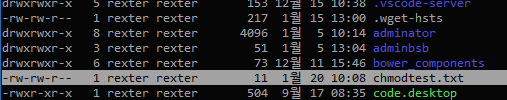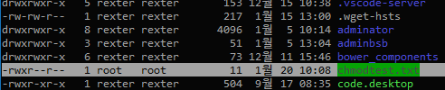 맨 왼쪽의 권한이 바뀌어 있는 것을 확인할 수 있습니다.