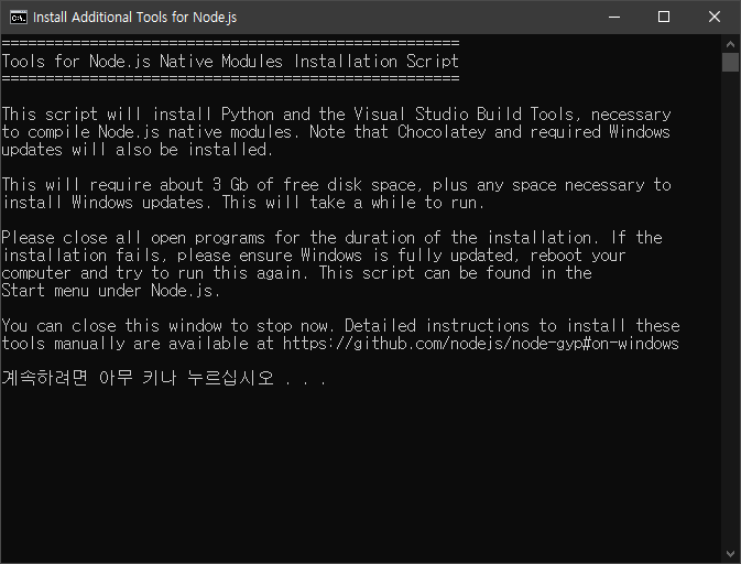 윈도우 파워셀 이 실행되면서 필요한 것들을 설치하게 됩니다.
